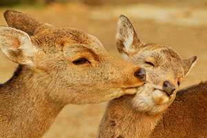 子鹿のくすぐったいのか、気持ちいいのかなんとも言えない表情に和みながらも、