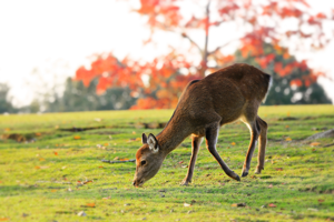そんな名木をバックに茜色に染まりながら散歩する鹿さん。