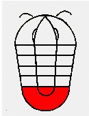 segment)が数節癒合してできています。この尾板は種によって大小様々な大きさがあるのですが、一般的に尾板の大きい種は胸節の数が少なく、尾板の小さい種は胸節の数が多いことが知られています。(これは、三葉虫の発生と関係があり尾板から胸節が分離する行程が発生の初期に止まるか否かによるようです。)