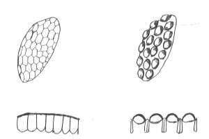 シルル紀よりデヴォン紀の間に栄えた三葉虫の一群、ファコプス類は下図に示すような集合複眼[schizochroal
