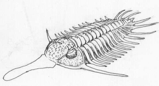 ここで紹介するシコピィゲは後述するフィロニクス[Genus Philonix]に近縁な三葉虫で、同じように現在のモロッコ付近に生息していました。この種の特徴は、頭の先にまるでアヒルの嘴を思わせる”嘴”があることです。多分、この嘴は泥の中に潜る時に利用されたのでしょう。