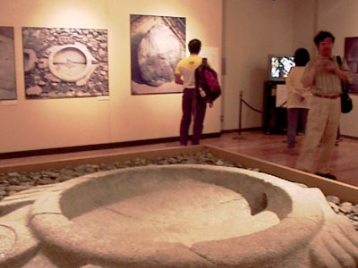 展示の目玉の「亀型石造物」レプリカ。出来栄えは、たぶん本物そっくりで大変素晴らしい。 |