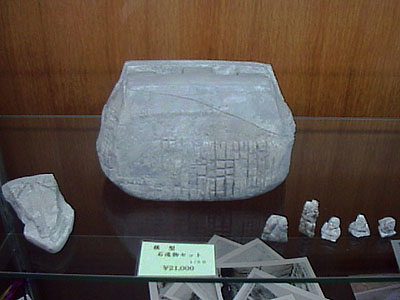 早くも"おみやげ"に登場した、ミニチュアモデルの「亀型石造物」。来館記念にお一ついかが? |