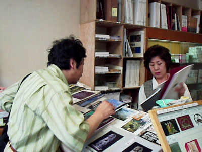 売店で資料を隈なくチェックされる星野先生。頭の中には一体どのような構想があるのだろうか? |