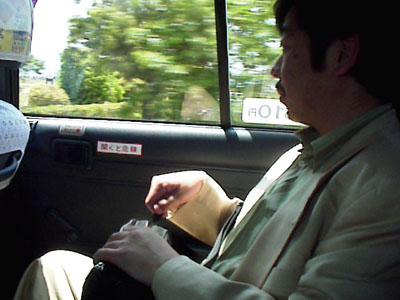 華麗にタクシーで取材先を廻られる星野先生。藤原宮跡を窓に見ながら資料室へと向かう。 |