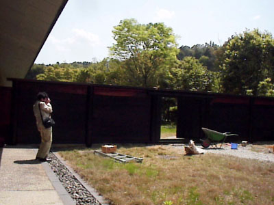 当時の木塀を復原しているコーナー。この木塀と庭をパチリ。 |
