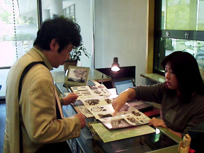 その受付けの学芸員に資料の説明を受けられる星野先生。美人のおねーさんでした。 |