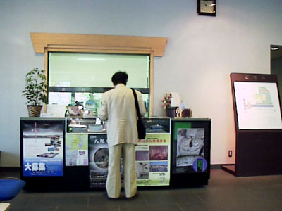 一通り館内を見終えられ、資料を求めに入り口の受付けへ。 |