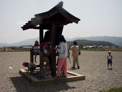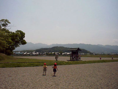 幼稚園児が戯れる藤原京跡。ここは子供達の恰好の遊び場になっている。 |