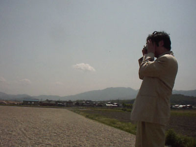 辺りを軽く歩きまわられ、撮影ポイントを探しておられるご様子の星野先生。 |