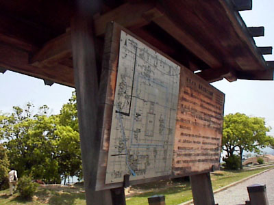藤原宮の案内板。これによると天皇の出御する大極殿は8階建ビルの高さの建造物だったそうです。 |