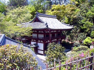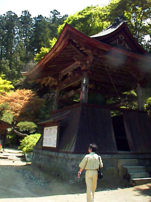 本堂前にある鐘つき堂。この横手から本堂をカメラに収録されていた。 |