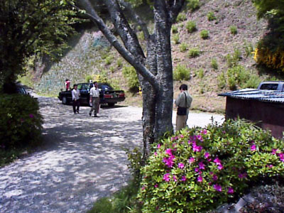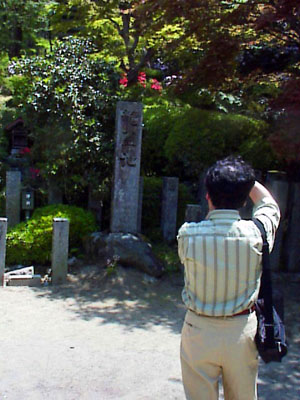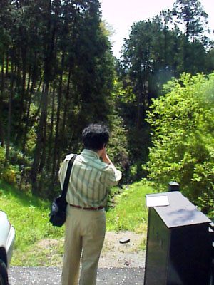 "龍蓋池"を撮る星野先生。池そのものはこの奥の左手にある小さなものでした。 |