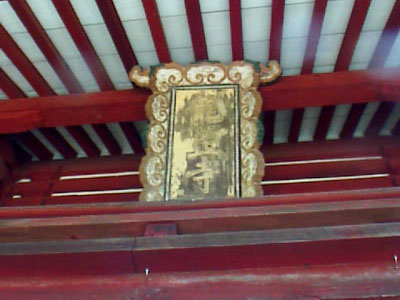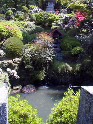 その"龍蓋池"。鯉が泳いでいたような気もする。池の中に奉られている石もあった。 |