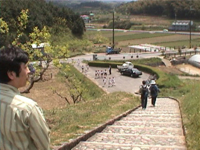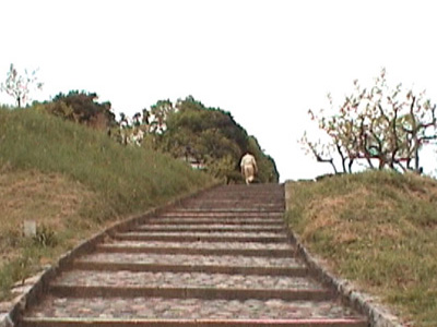 帰りの階段からは、さえぎる物も余り無く周りの景色が良く見えます。下に見えるのは遠足の小学生たちだろうか。 |