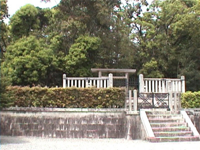 登り切ると、すぐに奥に見える天皇陵の鳥居。 |