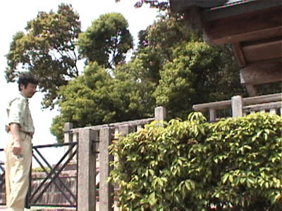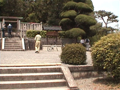 天皇陵鳥居に近づく星野先生。と、その前に・・・ |
