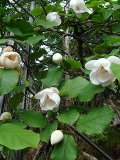 弥山〜八経ヶ岳〜明星ヶ岳 【日 時】2008年7月2日(水)〜3日(木) 【メンバー】JAC 9名 (会員外)2 【コースタイム】 2日。行者還トンネル西口10:30 …奥駆道に出る(昼食)…聖宝宿跡13:30 〜13:40…弥山小屋14:30 3日。弥山小屋06:50…八経ヶ岳7:20〜07:25…明星ヶ岳07:50〜08:00 …日裏山08:50〜09:00…栃尾辻11:50 〜12:20…坪ノ内登山口14:00 JAC自然保護委員会主催のオオヤマレンゲ観察会に二人で参加する。斧田自然保護委員長から、今回のテーマ「大峯・弥山周辺〜明星岳のオオヤマレンゲの保護状況と観察」について説明を聞き、登山口で登山届を提出して出発する。ゆっくりしたペースで稜線に出て昼食。聖宝宿跡は黄金色のマンネングサで彩られていた。膝の調子が悪いので聖宝八丁の急登を心配していたが、サポーターのおかげで、かえっていつもより楽に登れた。 弥山小屋に荷物を置いて、まず弥山へ。弥山神社背後の風倒木林の様子を観察した後、弥山西尾根・大黒岩周辺のオオヤマレンゲの保護状況を見に行く。オオヤマレンゲの衰退には様々な要因が考えられるが、なかでもシカによる食害が大きいといわれている。このため平成8年から奈良県、ついで環境庁による防鹿網が設置されていて、いまも工事が行われている。柵に沿うようにして斜面一面に咲くオオヤマレンゲの姿はまさに天女の群舞を思わせ、しばらくは全員がシャッターを押すのに忙しく、時の経つのを忘れる。小屋の前に帰り、しばらくは国見八方覗で遊ぶ。防鹿柵で囲まれた小さなオオヤマレンゲ群落があり、内外で草の生えかたが全く違うことからも柵の効果は明らかである。 3日。霧雨に煙った朝で明け、雨具をつけて出発。八経ヶ岳へ向う途中のオオヤマレンゲ群生地では、いつものように防鹿柵の扉を開閉して通過する。雨の滴をつけたオオヤマレンゲも憂いを含んだ美女のごとく、カラマツソウの大群落も霧の中に白く浮かんでいた。八経ヶ岳から台風の傷跡・倒木が痛々しい明星ヶ岳へ向う。頂上で記念撮影後、奥駆道を離れ緑の樹林帯に入る。樹床は厚いコケに覆われ、薄緑色のハート型や丸いリング状のコケの芽生えが不思議な美しさを醸し出す。倒れた木からも小さな新しい生命が生まれていて、自然の力強さ、たくましさを知らされる。高崎横手から坪ノ内へ下る。幻想的な霧の中に白いツルアジサイの花が浮かぶブナ林や、苔むした大岩の間や、崩壊地を通過したりして長いが変化に富んだコースだった。栃尾辻で昼食。午後は栃尾山の山腹を捲いて、静かな林の中を下る。天ノ河温泉で汗を流して帰途についた。大峯の美しい自然を私たちの世代限りにしないために、一人ひとりに何ができるかを真剣に考えなければならないと改めて思った。 |
