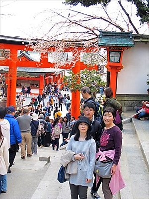 帰省中の美穂、風雅と4人で伏見へ。駅を降りると好天気の日曜とあって、先月にも増して大勢の人で賑わっていた。参道左手の末社を拝み、本殿に参拝し、神楽を拝観して東丸神社に参る。