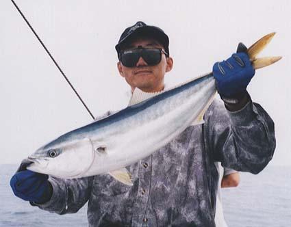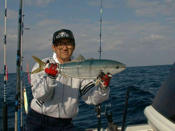 98年から、ジギングを始めました。ジギングとはルアー釣りの一種で、メタルジグという小魚の格好をしたルアーを水中で動かして、魚を釣る釣り方です。魚食性の魚なら釣れる可能性があります。おもなターゲットは、ブリ・ヒラマサ・カンパチなどの青物、ガシラ・ソイ・アコウなどの底物、そのほかスズキ・ヒラメ・マダイ など です。食べて美味しいものがほとんど、しかもけっこう大物もくるので釣れたときの手応えはバツグン、パワフルな引きを楽しみ帰ってからはうまい刺身がたべられます。