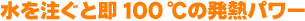 水を注ぐとすぐに加熱反応が始まり、高温の蒸気が吹き出しますので、やけどには特にご注意ください。 |