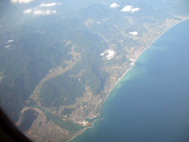 その後も富士山が見えたりしましたが、紀伊半島に近づいてきて高度が下がったのか、