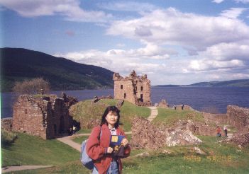 アーカート城の後ろにみえるのがネス湖。ネッシーはいませんでした。